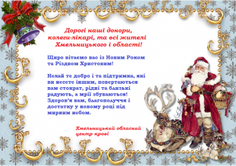 Шановні донори! Прийміть найщиріші вітання з Новим роком та Різдвом Христовим! Бажаємо ці традиційно світлі свята зустріти у радісній, доброзичливій, теплій атмосфері. Нехай у ваших домівках панують добробут і злагода. Дякуємо за плідну співпрацю та сподіваємось на її продовження у наступному році. Читати далі