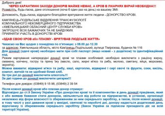 КНП "ХМЕЛЬНИЦЬКИЙ ОБЛАСНИЙ ЦЕНТР СЛУЖБИ КРОВІ"