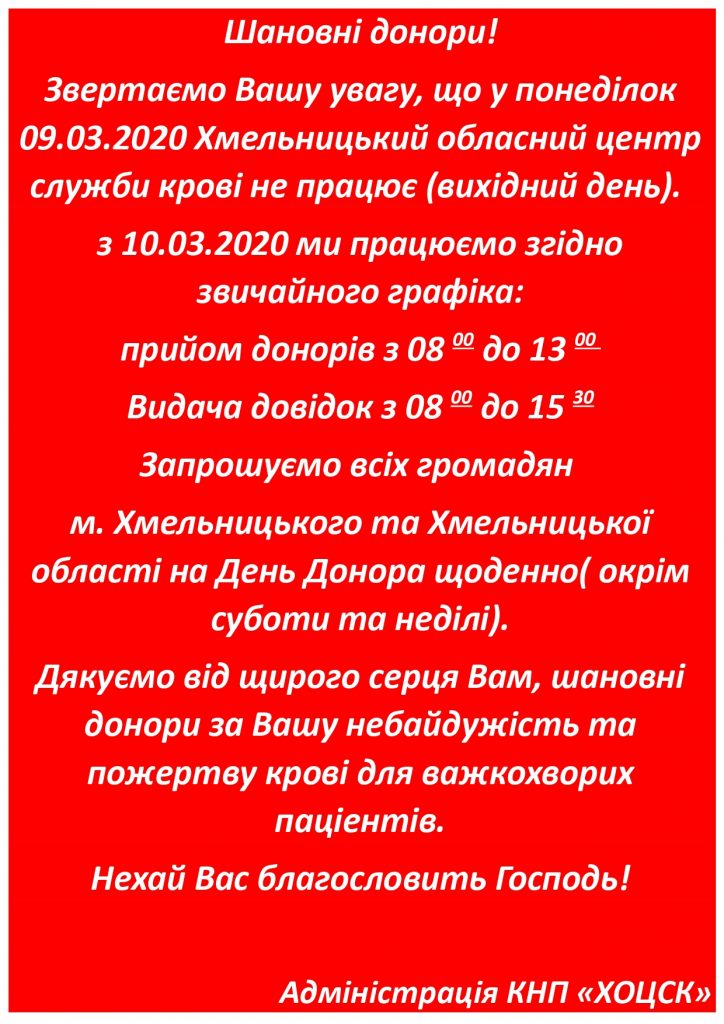 КНП "ХМЕЛЬНИЦЬКИЙ ОБЛАСНИЙ ЦЕНТР СЛУЖБИ КРОВІ"